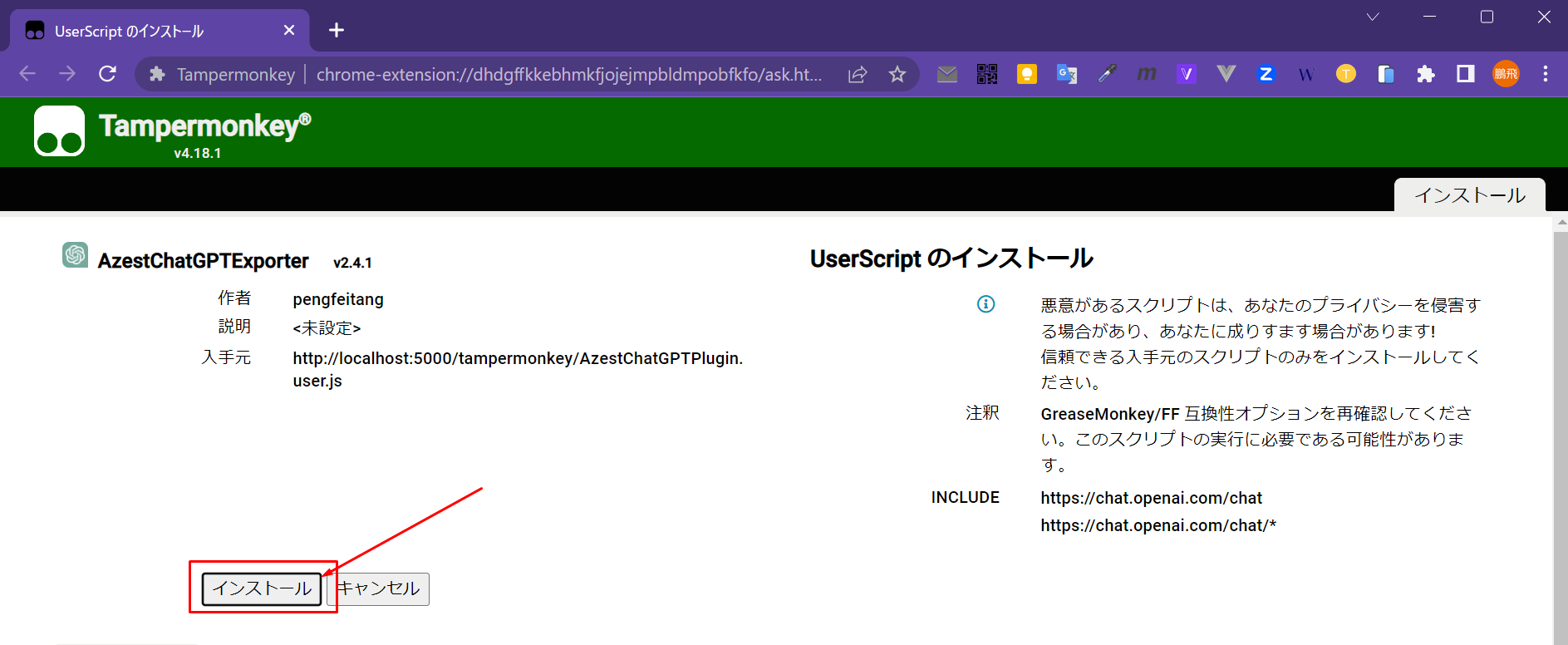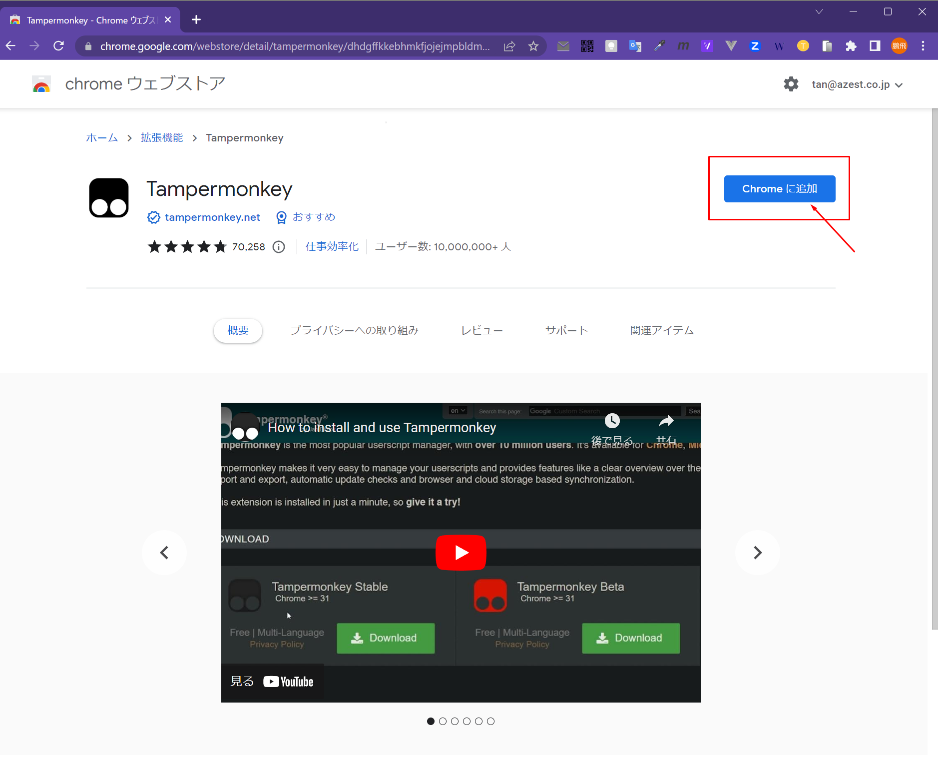 2.下記のURLでAzest製ChatGPT Extensionsツールをインストールしてください