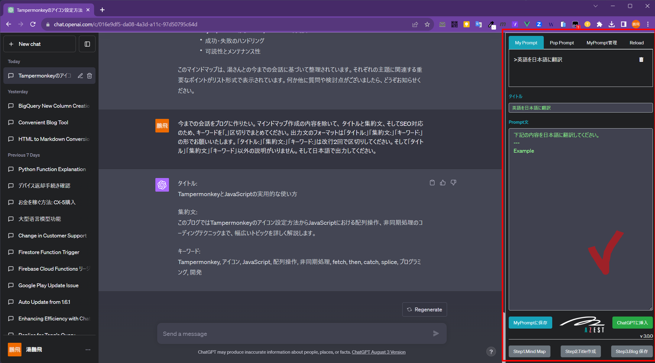4.ログイン成功した後、Azest製ChatGPT Extensionsツールが画面の右側に表示されます。