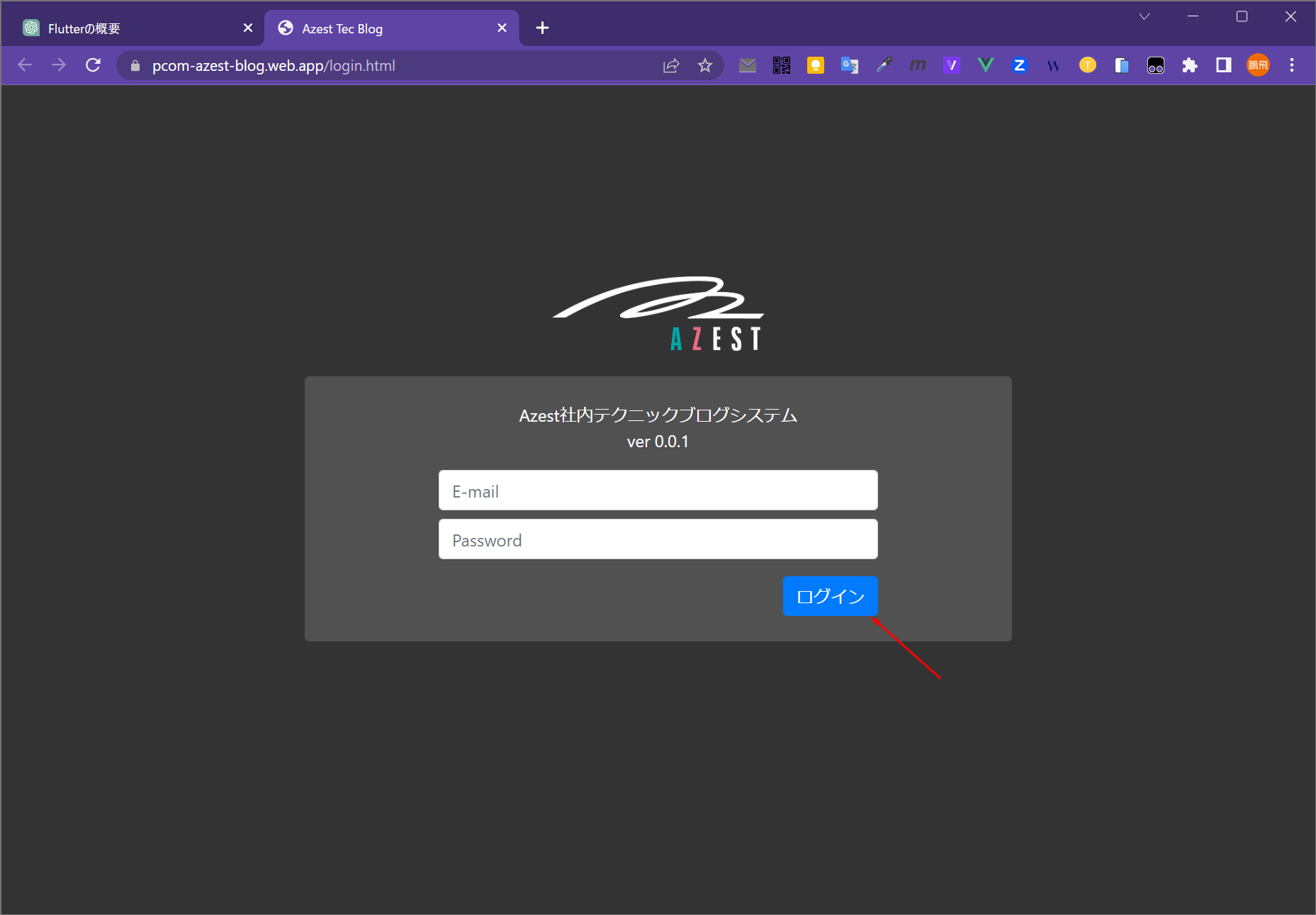 3.Azest社内テクニックブログシステムに遷移されます。初回の場合、会社が提供されてるメールアドレスとパスワードを使って、ログインしてください。