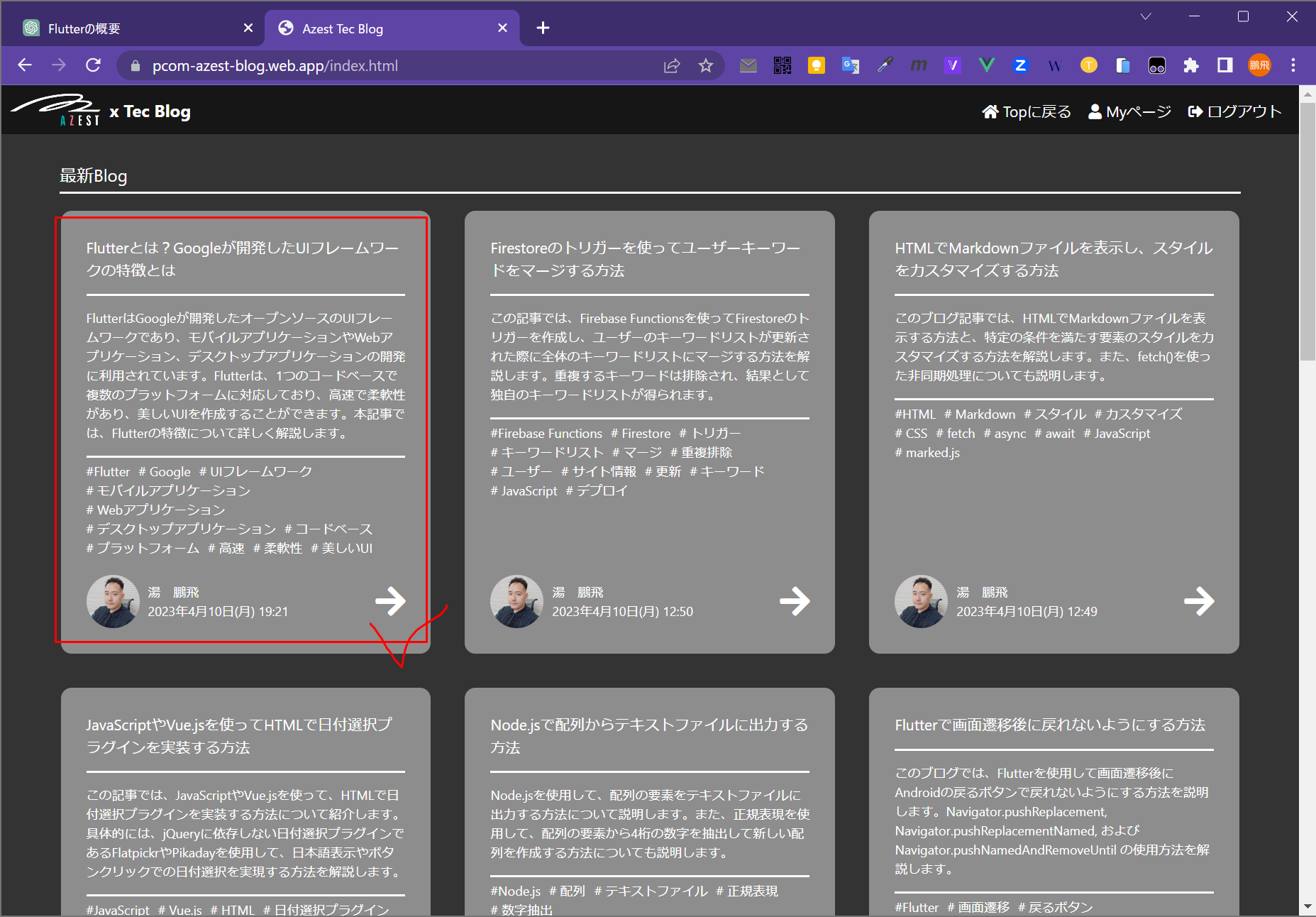 2.「Topページ」に戻して、他の方から投稿されたブログも閲覧できます。